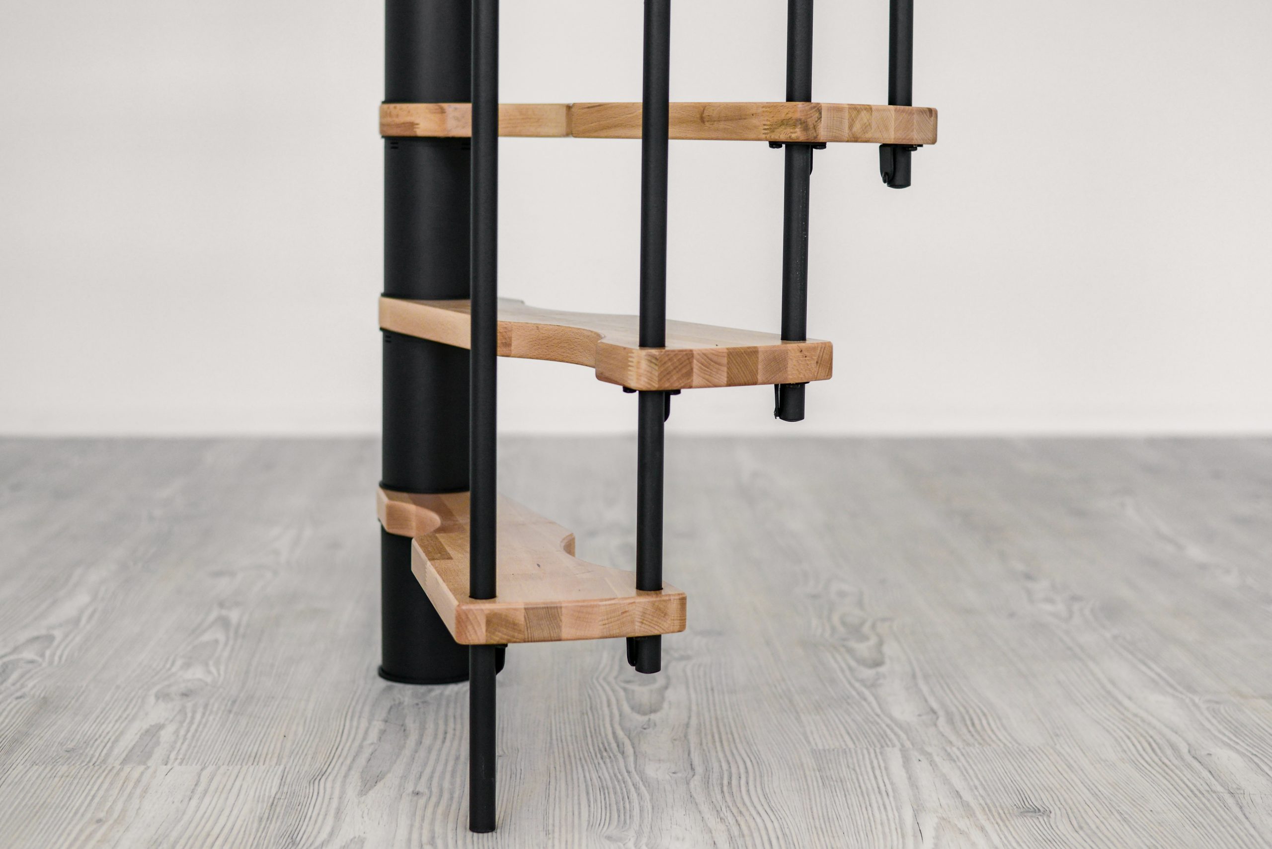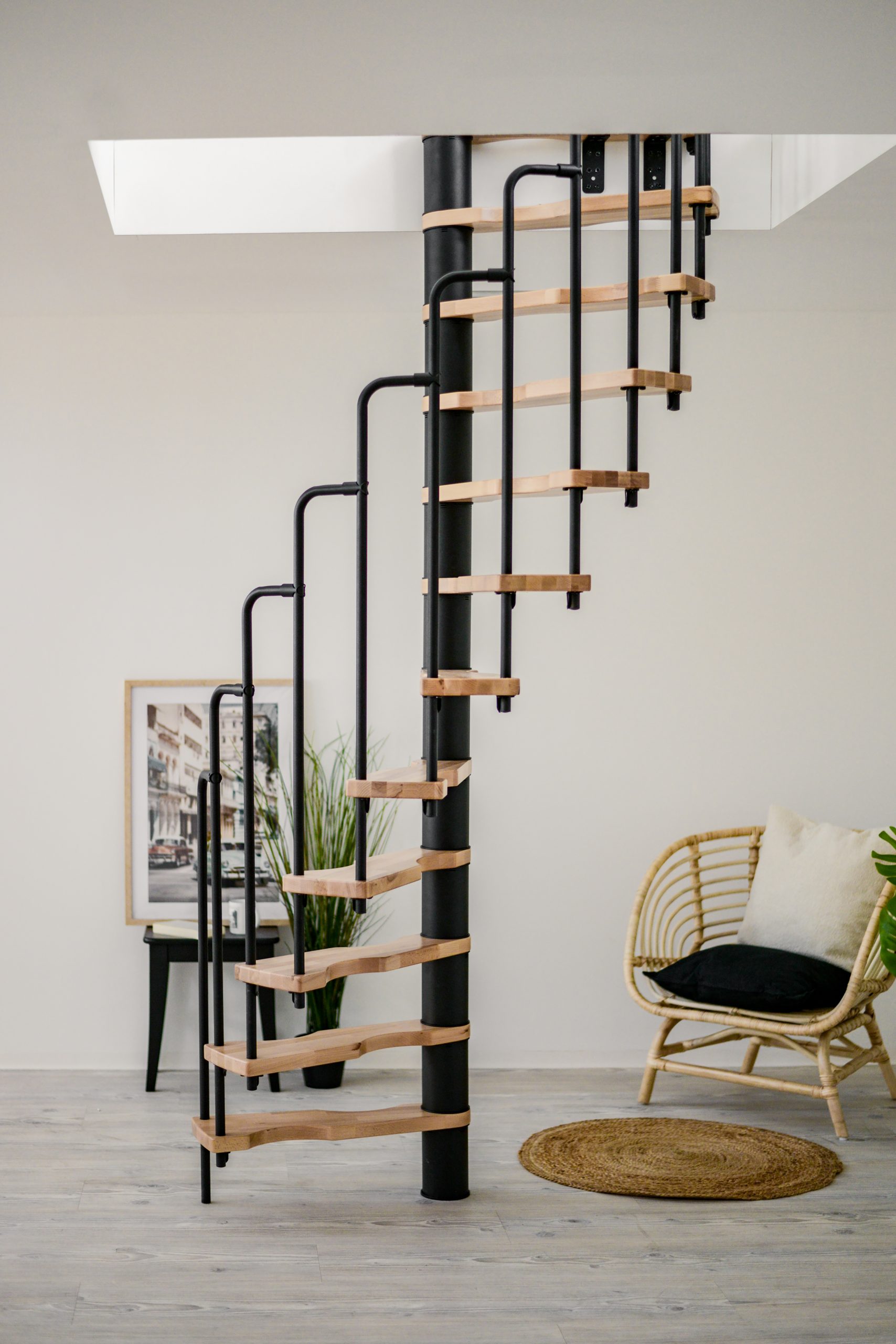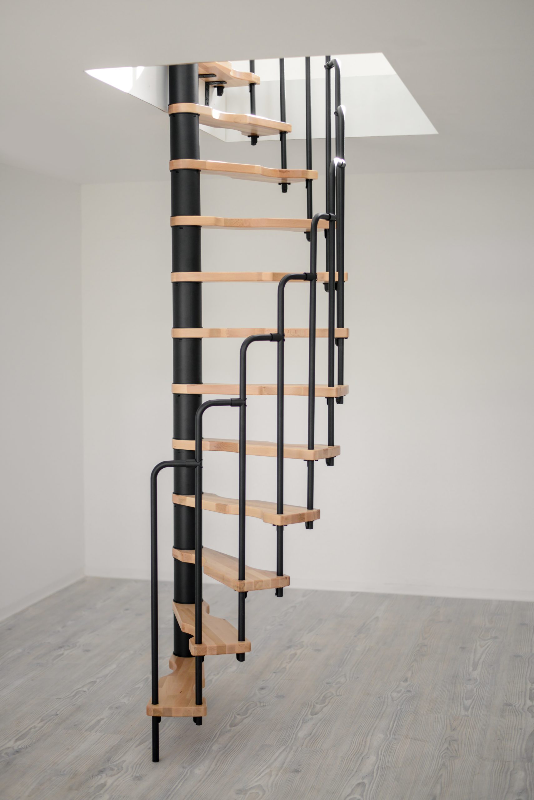 - Tar otroligt lite utrymme tack vare att trappan inte vrider sig mer än 168 grader.